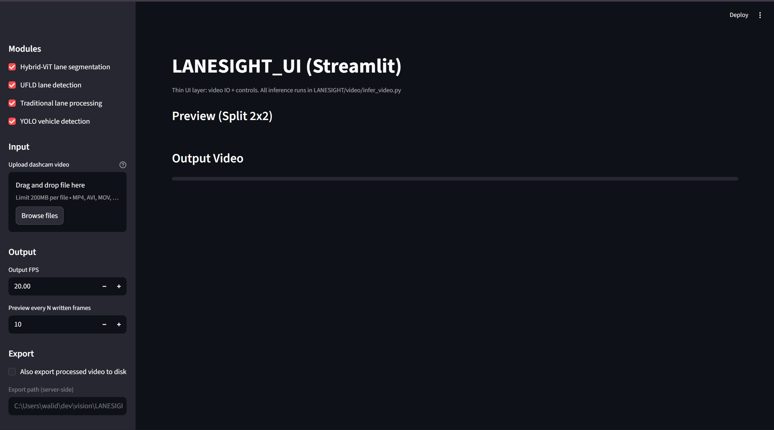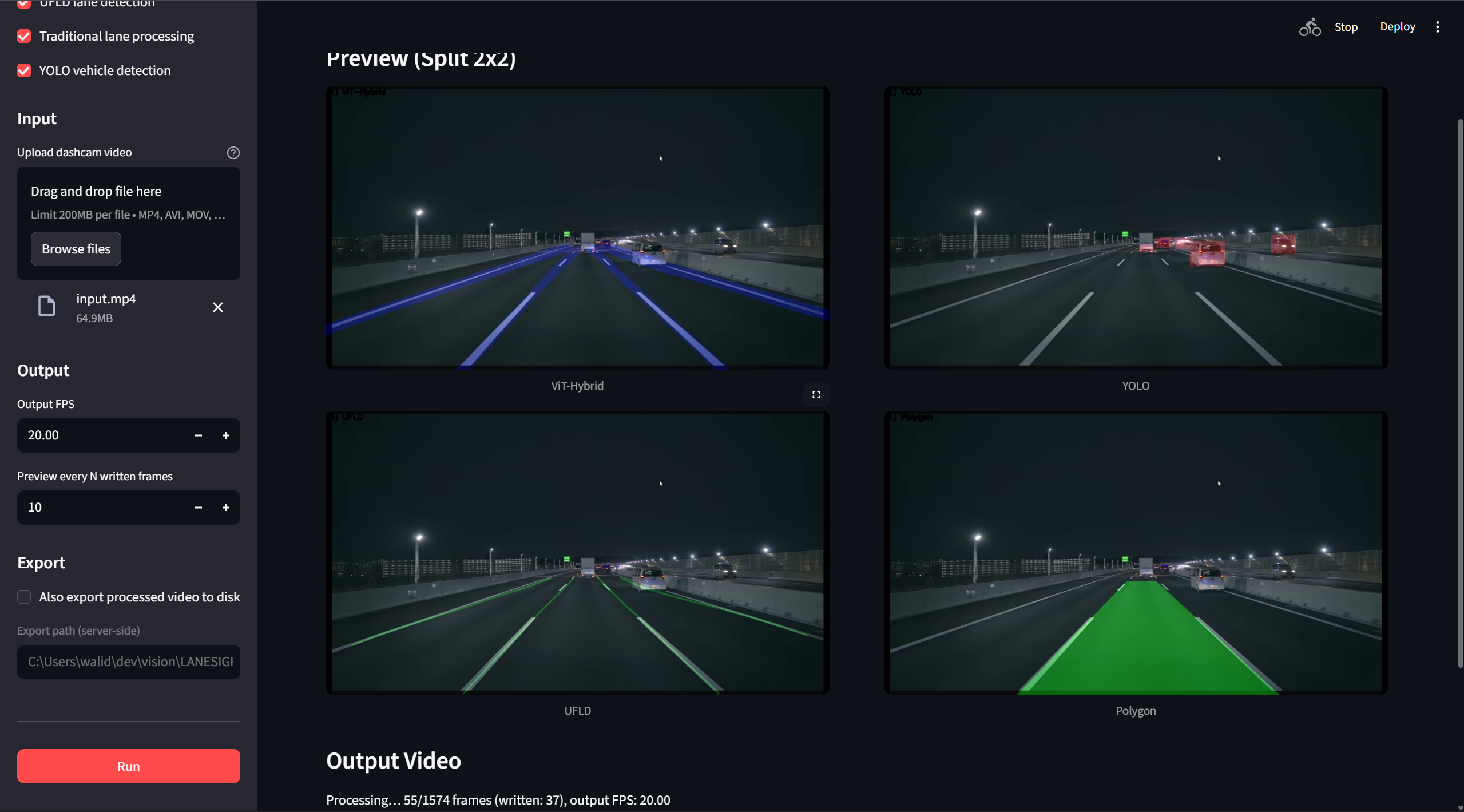 It combines deep semantic understanding (Hybrid ViT-UNet) with geometric lane modeling (UFLD), classical vision priors, and object-aware filtering (YOLO) into a unified inference pipeline.