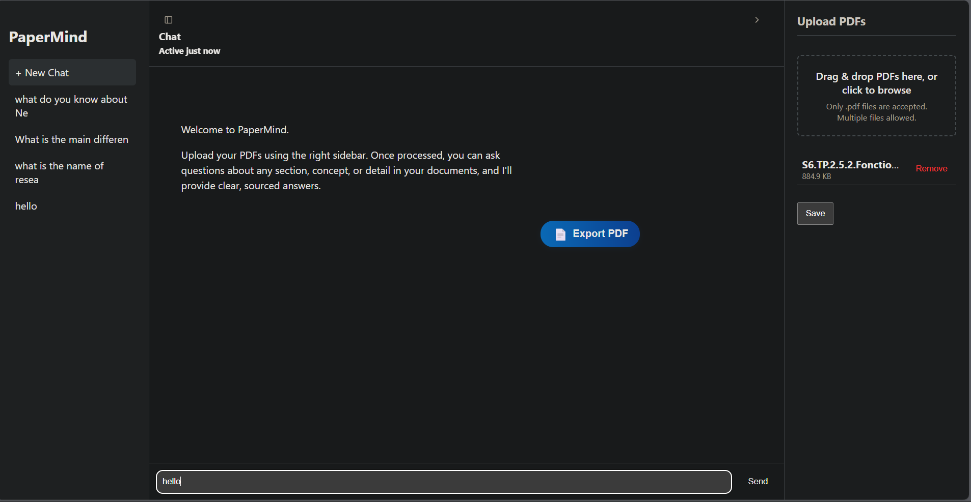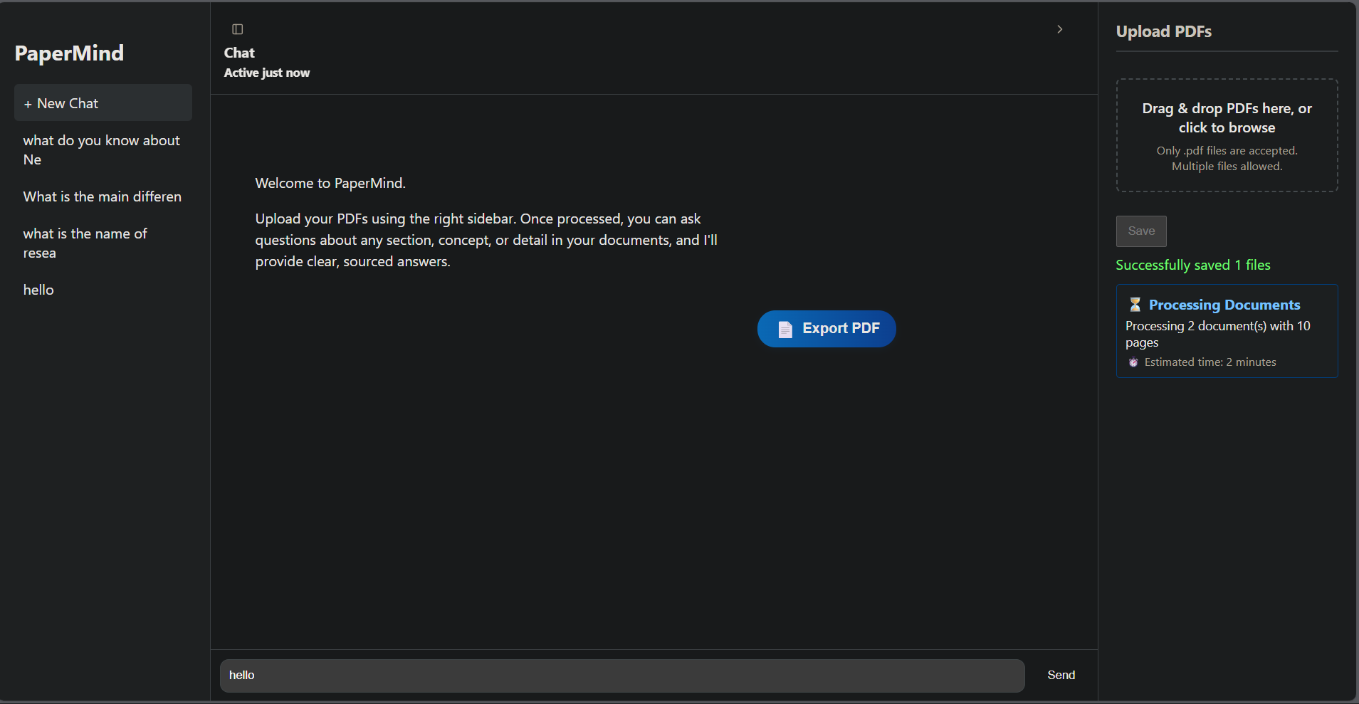 PaperMind is an intelligent application that lets users chat with their PDF documents.